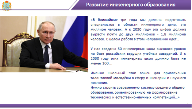 • Создание качественной модели профильного обучения, которая подготовит школьников к освоению будущей профессии по инженерной специальности.